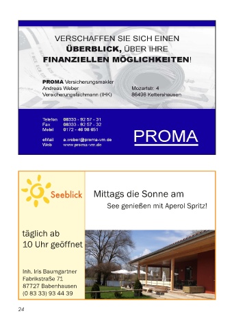 Mittags die Sonne am See genießen mit Aperol Spritz! täglich ab 10 Uhr geöffnet Inh. Iris Baumgartner Fabrikstraße 71 87727 Babenhausen (0 83 33) 93 44 39 24