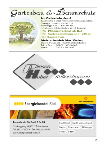 Energiehandel Süd GmbH & Co. KG Shell Heizöl Shell FuelSave Diesel Schöneggweg 39 | 87727 Babenhausen Erdgas Photovoltaik Flüssiggas Tel. 0 83 33 / 92 07 - 0 | Fax 0 83 33 / 92 07 - 17 www.energiehandel-sued.de Pellets Strom 29