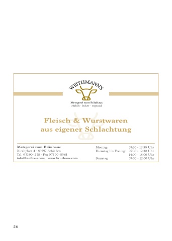 Metzgerei zum Bräuhaus Montag: 07:30 - 12:30 Uhr