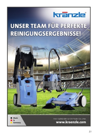 UNSER TEAM FÜR PERFEKTE REINIGUNGSERGEBNISSE! Made Ihren Fachhändler vor Ort finden Sie unter: in Germany www.kraenzle.com 31